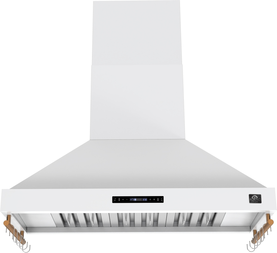 The Forno Venezia 48 Inch Wall-Mounted Range Hood in White with Antique Brass Accessories, Touch Controls and Baffle Filters offers powerful ventilation with three adjustable airflow speeds and convenient touch controls. Designed for flexibility, it features adjustable height, an automatic shut-off with delay timer, and dishwasher-safe baffle filters for easy maintenance. Ideal for modern kitchens, this stainless steel range hood combines performance and style with energy-efficient lighting and a sleek touch control panel, perfect for any cooking setup.Read More